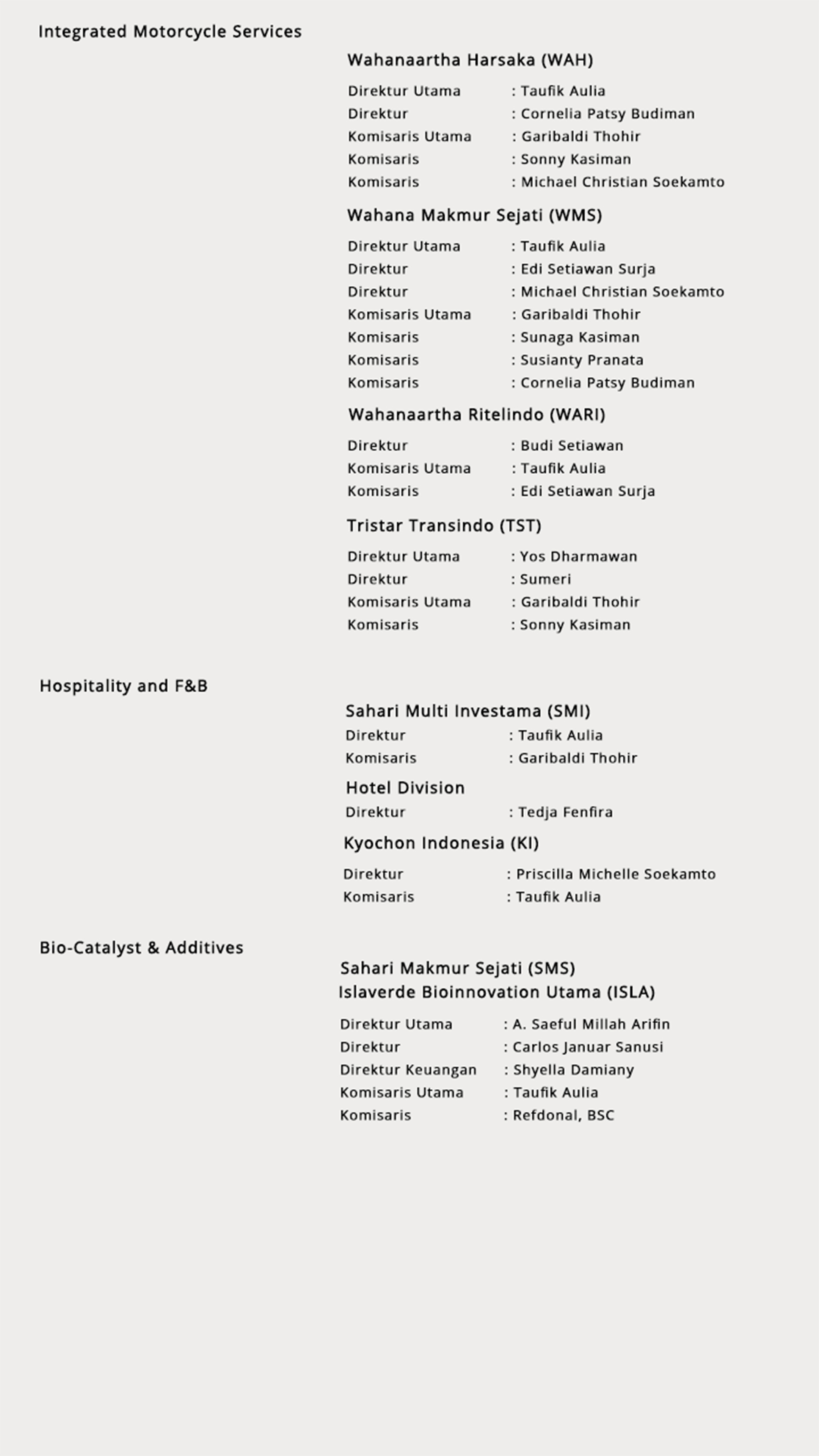 Wahana Artha Group first started its business in 1972 as the regional distributor of Honda Motorcycle for Greater Jakarta Area. Over the years, the Group has expanded to become one of the largest and most integrated motorcycle services group in Indonesia. Besides being the regional distributor, the Group does motorcycle rental, trucking and logistic services, retail sales direct to customers, after sales services and parts, credit financing and insurance.