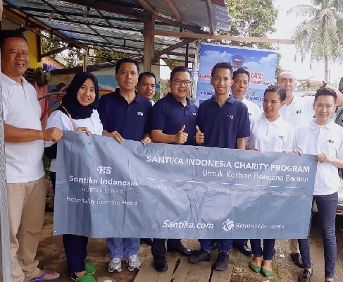 Donasi tersebut di serah terima kan kepada Bapak Sutiono di Posko peduli bencana banjir & tsunami kecamatan Labuan, kabupaten Pandeglang, Banten. Sekitar pukul 13.00 WIB langsung kami serah terimakan bantuan tersebut. Tidak banyak, namun kami harapkan untuk dapat sedikit membantu masyarakat di sana, ujar Dadi Mulyadi – General Manager Hotel Santika Kelapa Gading – Jakarta.